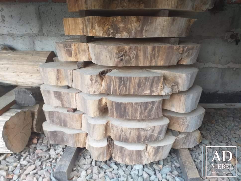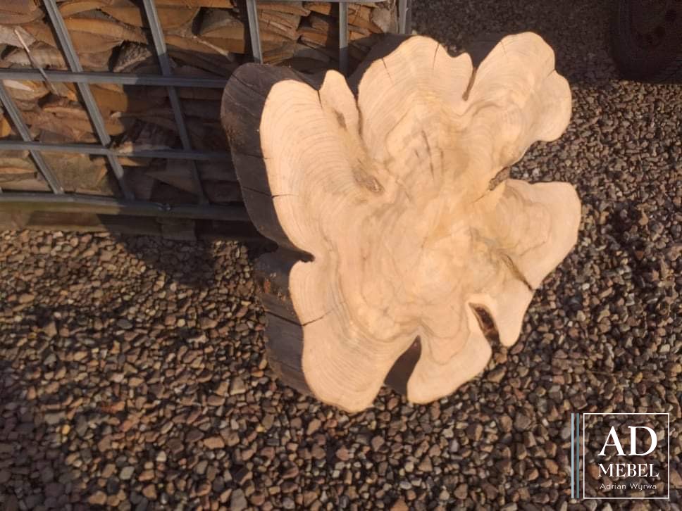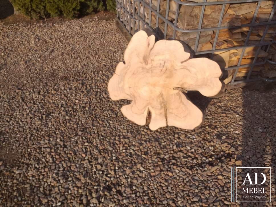 W ofercie kolejne plastry z drewna wiązowego. Średnica około 75cm, grubość 8cm, dostępne 10 sztuk.