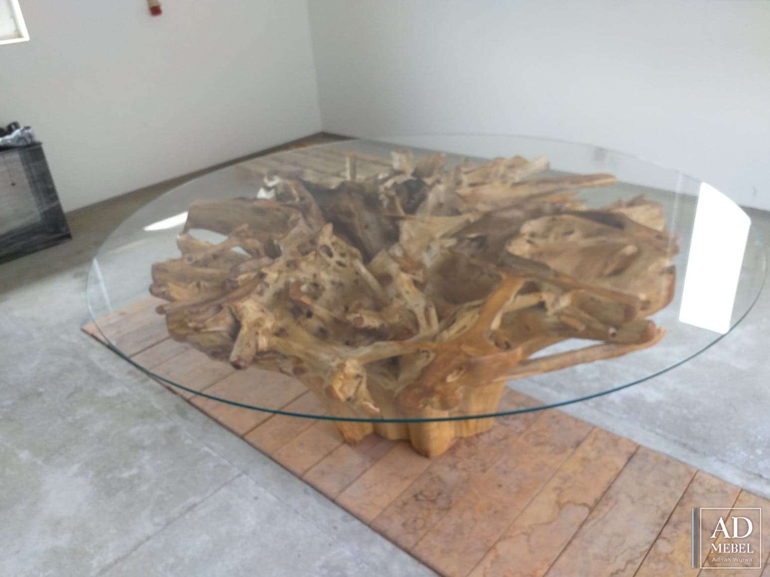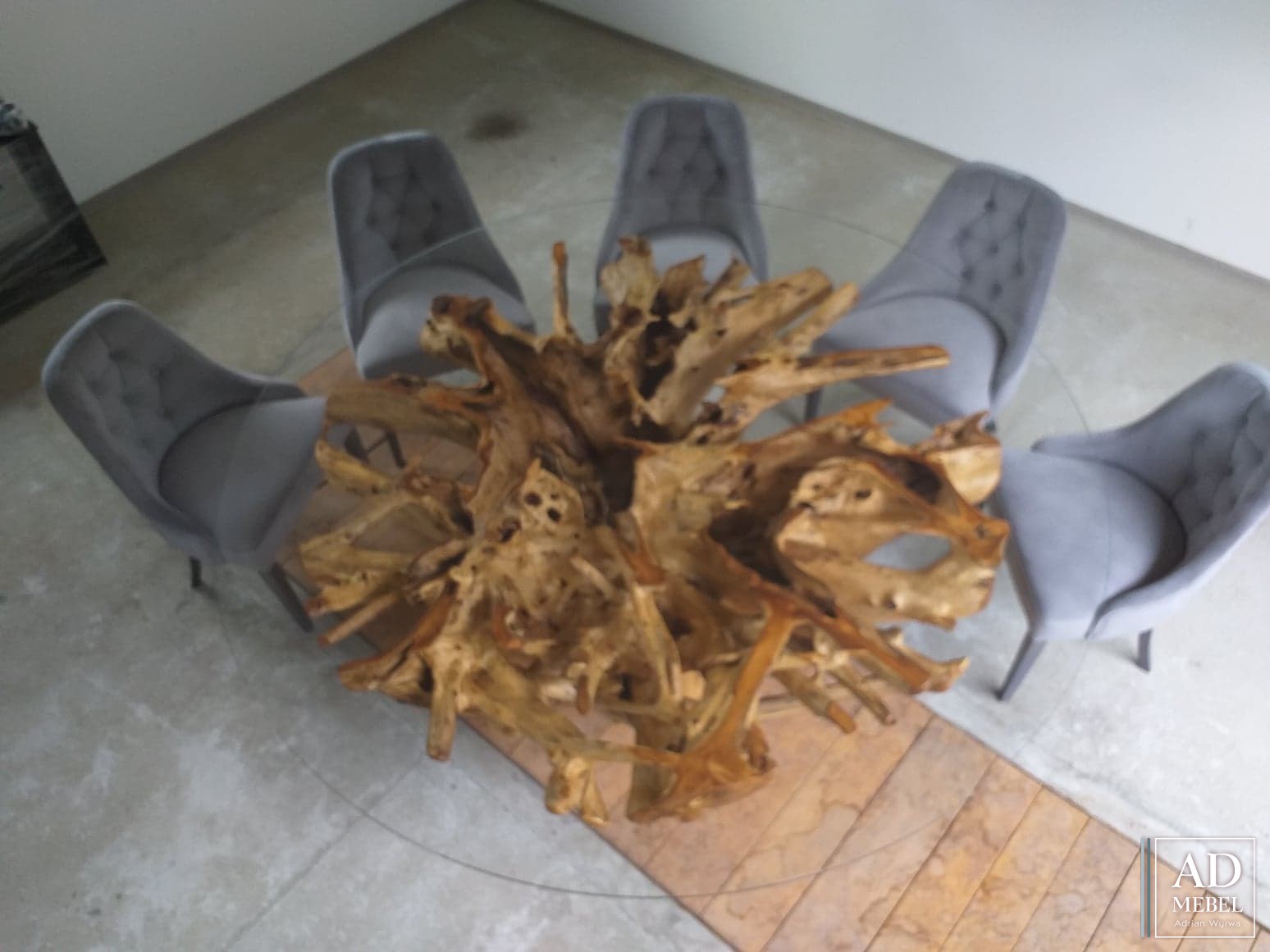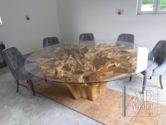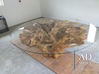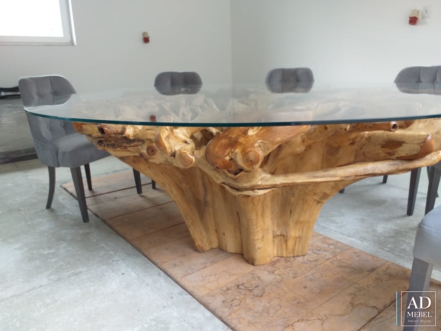 Piękny korzeń z drewna teakowego wykończony metodą olejowosku. Hartowana szyba pozwala uwydatnić niezwykły kształt korzenia wykończonego ręcznie. Stół gotowy do odbioru. Zapraszamy do kontaktu.