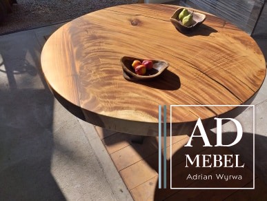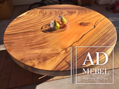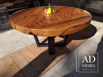 Nowy stolik kawowy w naszej ofercie wykonany jest z drewna egzotycznego suar. Blat wykończony żywicą oraz olejowoskiem. Noga z czarnej stali malowanej proszkowo.